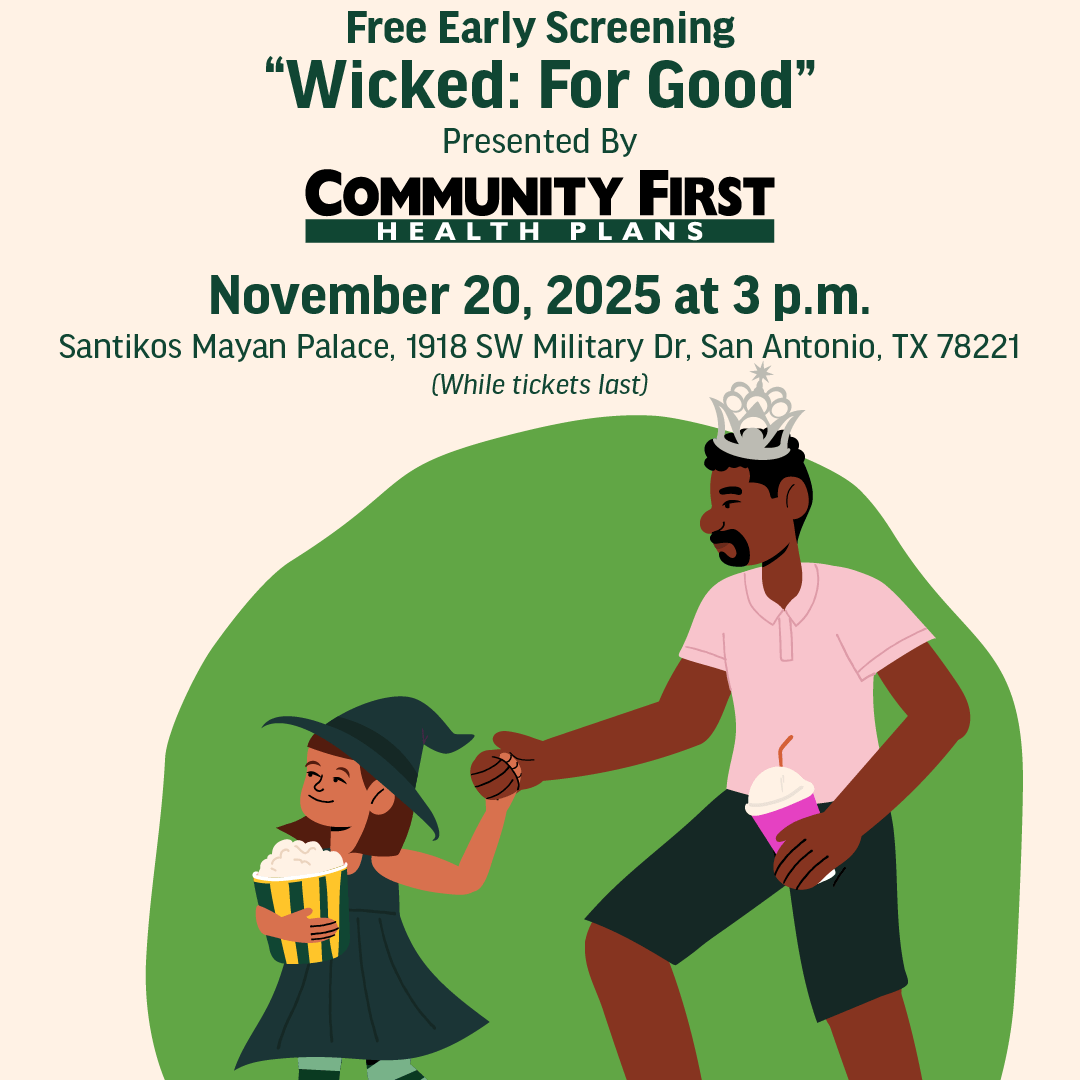 To get yours, stop by the green Community First Health Plans booth at the theater on November 20 before 2:00 p.m. to check in and claim your ticket and snacks. ⏰ First-come, first-served, so arrive early!